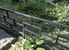 Кладём брусчатку, замываем её, пока она высыхает – приступаем к перекраске ограждения.