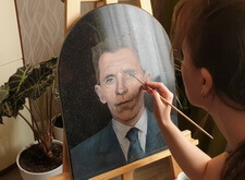 После окончания работы над заготовкой, плита была передана художнице-портретистке, которая и продолжила работу над ним. Для начала она покрыла гранит специальным раствором, на который в дальнейшем и будут наноситься краски.