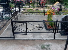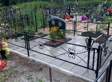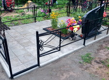 Подготовленную почву застелили геотекстилем, который будет препятствовать проростанию сорной травы в плиточных швах. В это же время на территории могилы были дополнительно установлены лавочка и столик.
